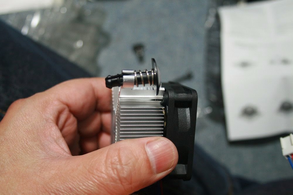 問題は、ヒートシンクの固定方法だ。こんな感じに、固定具を取り付ける。